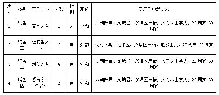 朝阳县公安局根据工作需要,决定面向社会公开招考辅警,现将有关事宜公告如下: