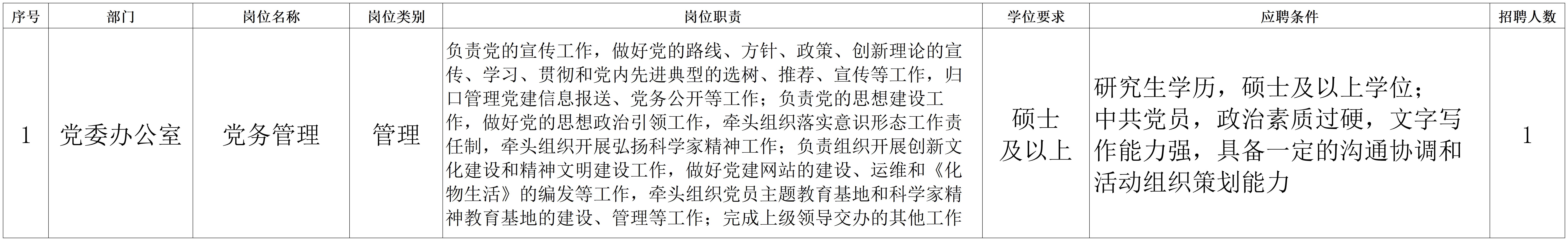 中国科学院大连化学物理研究所本着“按需设岗、公开招聘、竞争上岗、择优聘用”的原则,根据《大连化物所事业编制工作人员招聘实施细则(试行)》有关要求,现面向社会公开招聘党委办公室事业编制工作人员1名,具体信息如下: