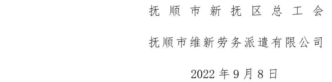2、本次考试不指定考试辅导用书,不举办和委托任何机构进行考试辅导;招考工作由抚顺市维新劳务派遣有限公司在抚顺市新抚区总工会的监督下根据公开招考流程统一组织,不收取任何费用及押金,所有带有收费性质的招考信息均为虚假信息。请考生不要相信任何中介,若因此造成损失责任自负。