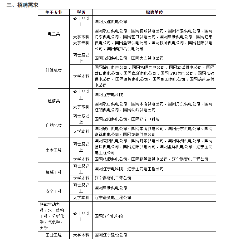 3.上岗要求。毕业生入职后,应服从录用单位的岗位安排,且执行电网有限公司关于新入职员工生产一线工作更低年限政策规定。