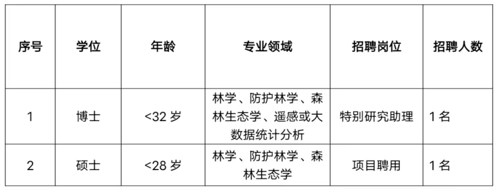1.申请者应具有近三年国内外获得的林学、防护林学、生态学硕士学位及相应的科研能力;