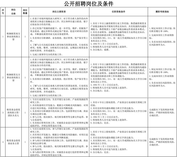 鞍钢资本所属鞍钢集团成都融资租赁有限公司(以下简称鞍钢租赁)业务管理岗位: