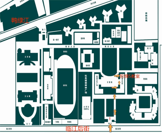 高铁:丹东站-106路公交珍珠泡方向-辽东学院临江校区站下车(此站下车即是西门)
