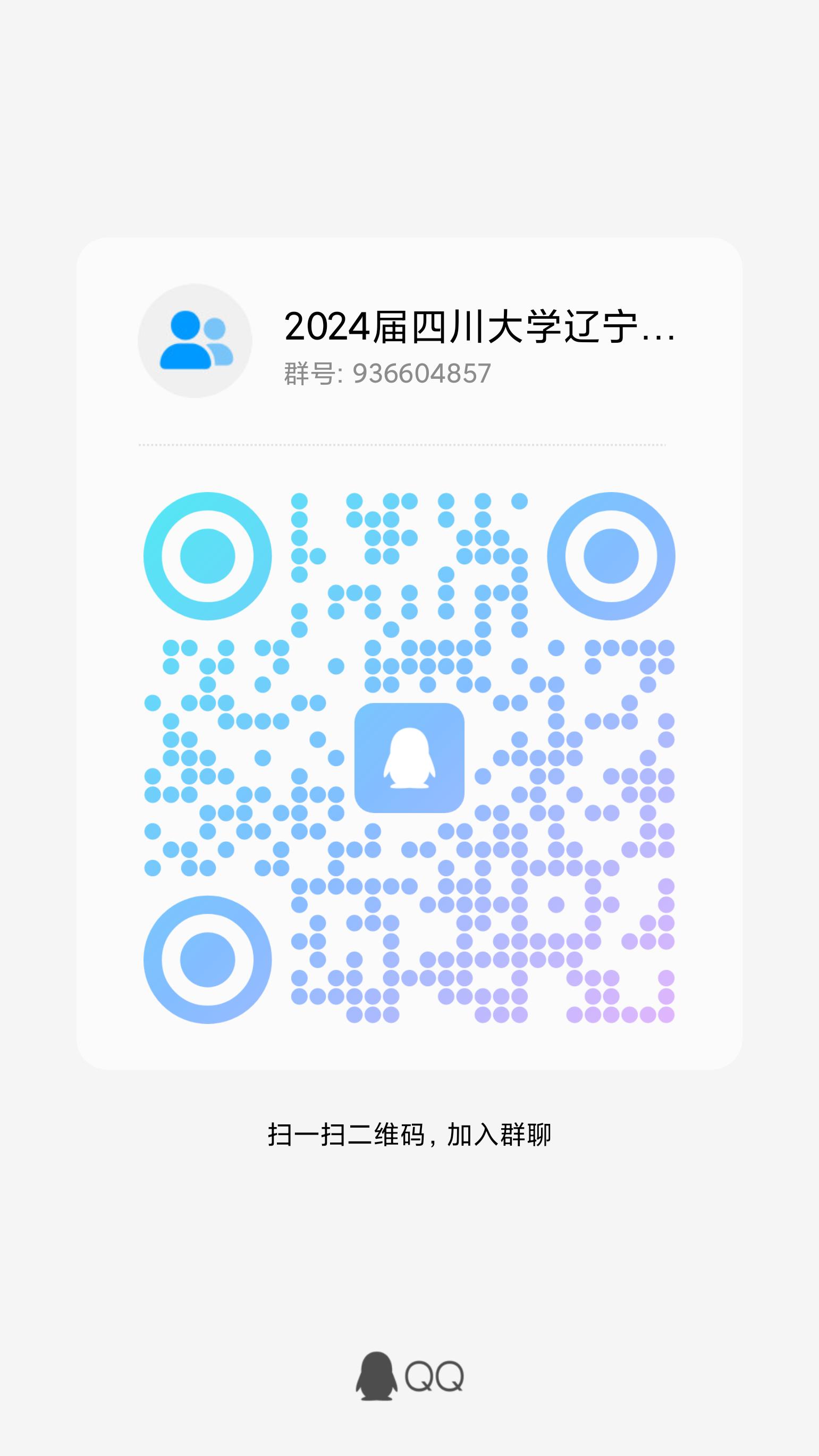 为了方便后续相关事宜的通知,请有意向报考辽宁选调的同学加入2024届四川大学辽宁选调QQ群(群号:936604857)。