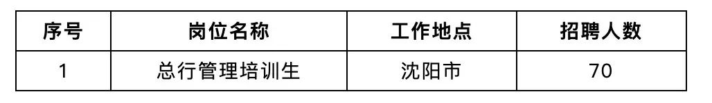 (一)总行管理培训生岗 招聘人数:70人