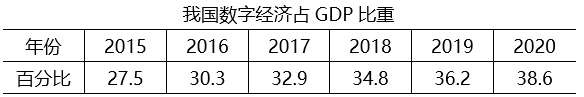 2020年我国数字经济规模达到39.2万亿元,保持9.7%高位增长,占GDP比重为38.6%,同比提升2.4个百分点。