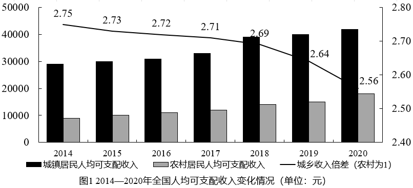 106、2020年全国城乡居民人均可支配收入差额约为: