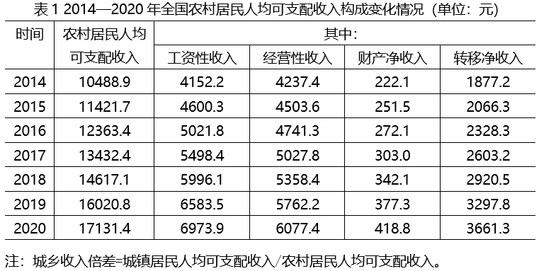 C、2014-2020年工资性收入占农村居民可支配收入的比重始终最高