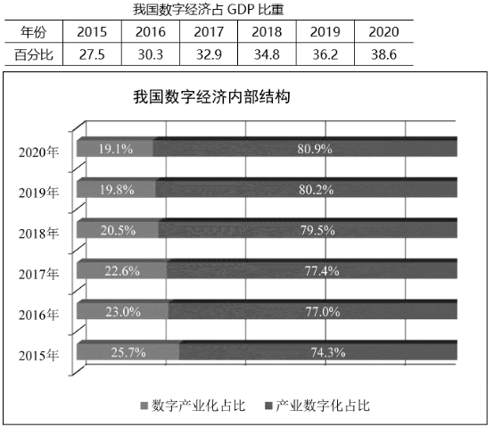 2020年我国数字经济规模达到39.2万亿元,保持9.7%高位增长,占GDP比重为38.6%,同比提升2.4个百分点。