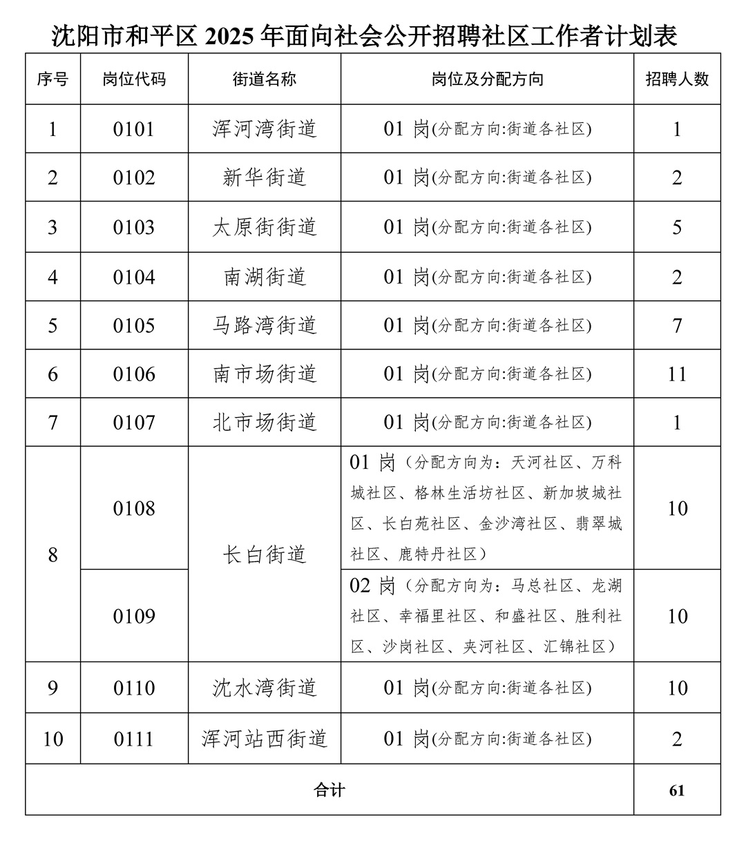 附件:沈阳市和平区2025年面向社会公开招聘社区工作者计划表