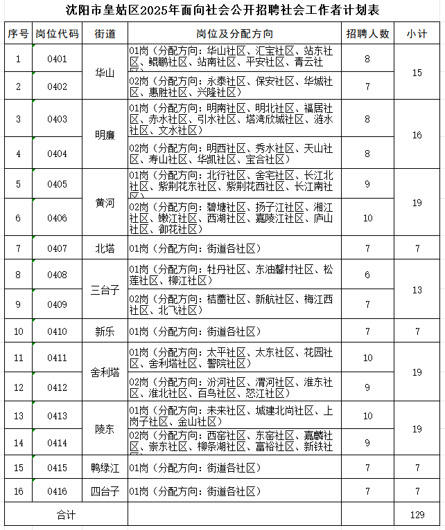 沈阳市皇姑区2025年面向社会公开招聘社会工作者计划表.xlsx